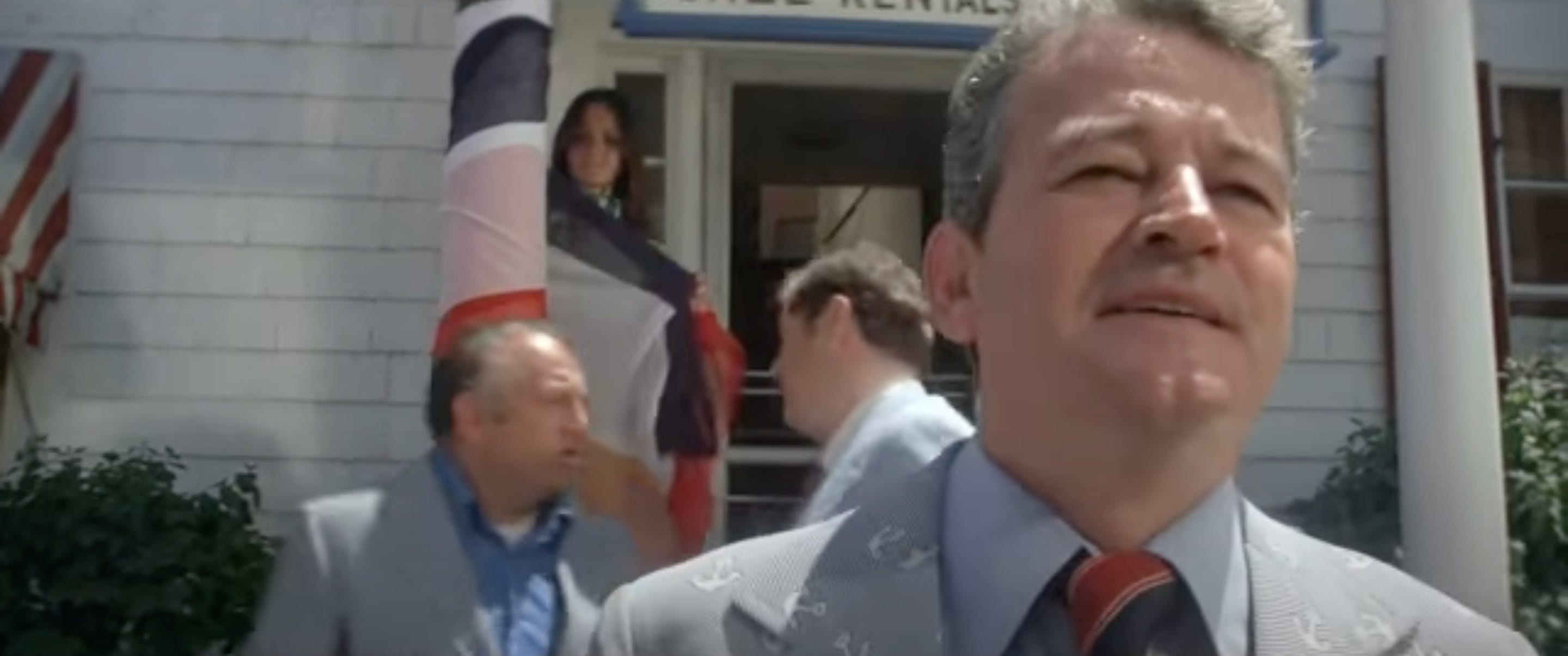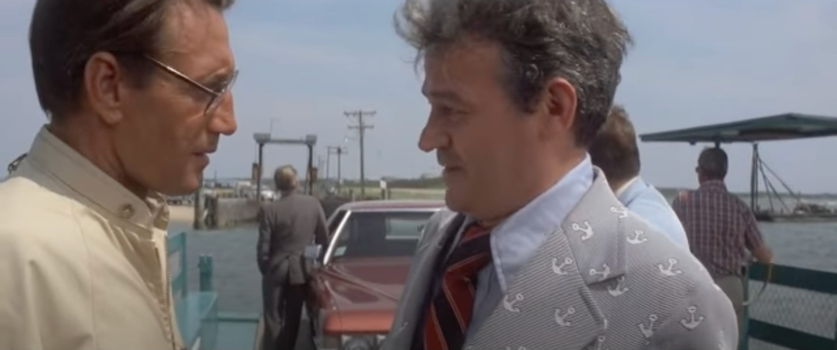 “Listen, we had a shark attack,” the deputy says (I’ve trimmed a bit of dialogue here). “Fatal. I’ve got to batten down the beach!”