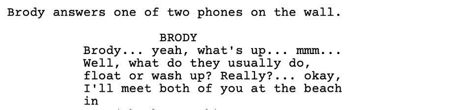 Now, go look at your latest draft. Look at those first ten to fifteen pages through the lens of this article and Jaws. What are you doing to get readers to “lean in”? What should you have cut out because, while great ideas, they proved unnecessary (like Brody’s glasses)? What dialogue is there to get right to the point as laid out in your outline rather than naturalistically expressing the same thing in a far more interesting, character-driven way? What thematic work is underpinning (almost) every scene?