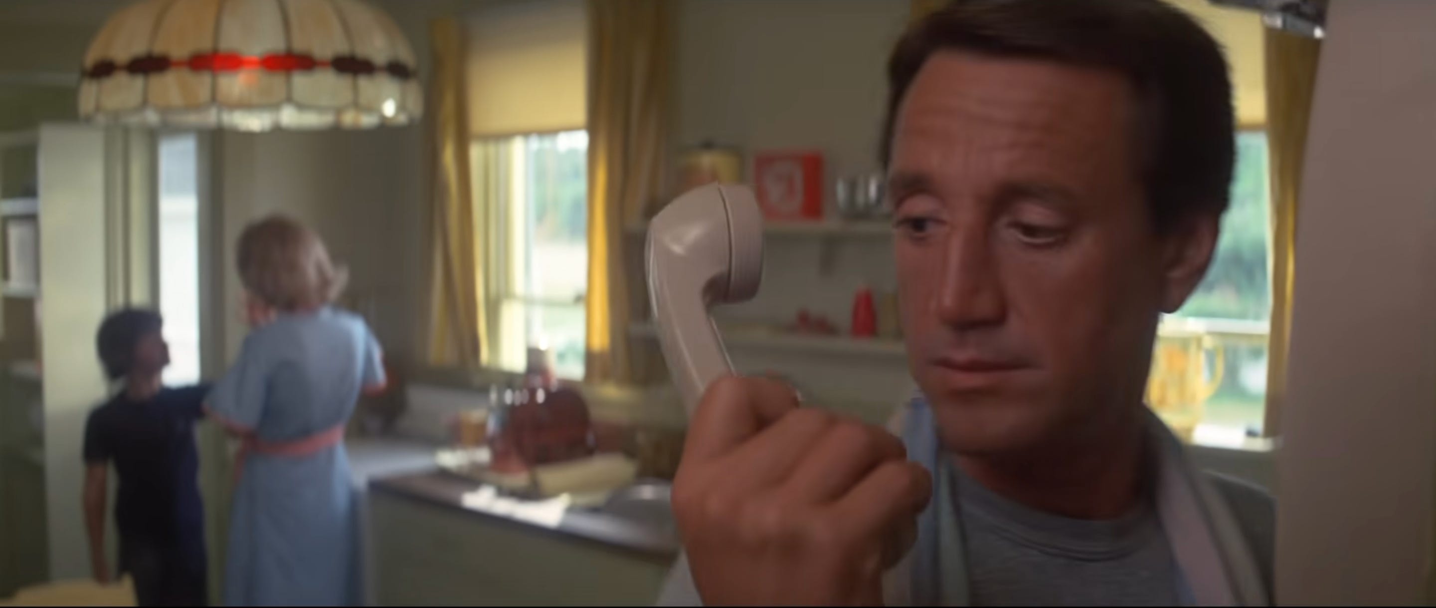 Here, the phone rings. Brody answers it…except there’s nobody there. That’s because he picked up the wrong phone. He grabs the receiver off a second phone, beneath the other one.