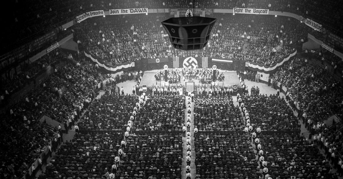 Seven months before Great Britain and France declare war on Nazi Germany, more than 20,000 people cram into Madison Square Garden for a “pro-Americanism” rally. At center stage is a towering image of George Washington. The Founding Father is flanked by swastikas.