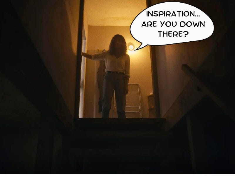 Inspiration is lot like a house cat. You can’t summon it by name. It just comes to you when it wants to. I will say that the very last place I get inspiration is by staring at a blank screen on my computer - despite forcing myself to do this for, oh, thirty years. While I don’t always write “autobiographical” scripts, I often cannibalize stories from my friends and family. And I often also ask myself: what am I fascinated by right now? What news article, Facebook post, Instagram reel, fond (or not so fond) memory, annoying neighbor or weird experience is living in my head rent-free - and that can get my mind churning. Not everything is meant to be a movie or tv series — nor does" “inspiration” always come in an obvious package— but if you can recognize the raw form and dig into your imagination, you might just find something there.