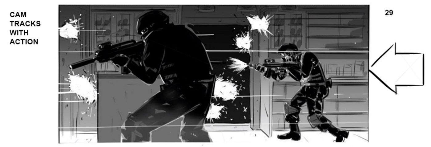 ED LAROCHE: Yes, thank you. You’re highlighting something I really love about these types of genre stories, which is scale and the best way to depict it is to either start small and go big, or start big and go small depending on what kind of emotional beat you want to end on.