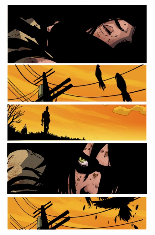 CH: What I’ve always loved about your graphic novel work is how important tone is to both your art and the stories that go along with that art. Maybe atmosphere is a better word. Or vibe. I like vibe. You do it better than most artists I follow, and pacing is huge part of that because you seem to be operating in a comic book world wholly unique to you and your voice. That voice is as deeply informed by cinema as comic books, especially cinematography and editing in both art films and action films. When I read you, I often find myself thinking I’m reading a graphic novel from director Terrence Malick, frames as carefully constructed as his, languidly edited together to create a poetic visual tapestry pregnant with existential meaning — then, blam, the story explodes into a Michael Bay action sequence. Talk to me about how you developed this hybrid style.