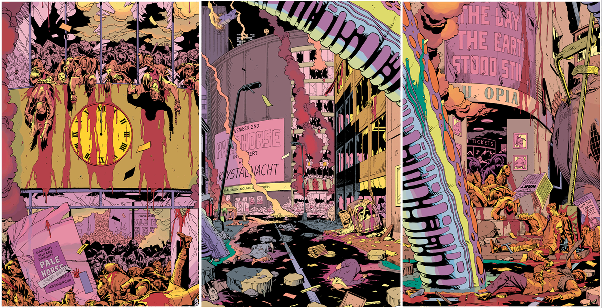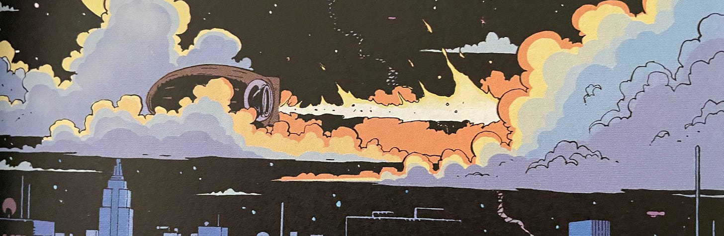 The mystery at the heart of Watchmen is that one of the titular characters, the most intelligent man alive allegedly, has recognized that humanity cannot indefinitely survive under the benevolent thumb of good ole Doctor Manhattan. He hatched a plan to dispatch his fellow former costumed adventurers, drive Manhattan to abandon Earth for Mars, and force the United States and the Soviet Union to the brink of nuclear war. The payoff is that he’s also genetically engineered a giant monster to be inter-dimensionally air-dropped into the center of Manhattan that will instantly wipe out millions of people before dropping dead. He is convinced the world will perceive this kaiju knock-off as part of a botched alien invasion and, desperate to protect themselves from more of the same, finally unite as one.