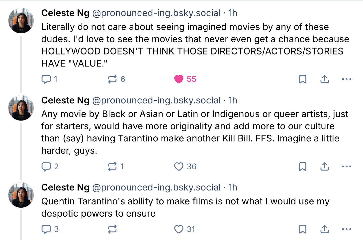 Now it’s your turn to weigh in. I’d love you to consider Ng’s thoughts as you do, both to challenge yourself but also reflect on what she might make of whatever mythical film you’d like to see. To be clear, no choice you put forth will be incorrect. Your passions are your own, but this could turn into a great opportunity for us to reflect on both our tastes and our cultural programming.